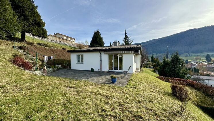 Située dans le village de Court, à 5 min. en voiture l'autoroute A16, cette maison individuelle en bon état nécessite quelques travaux de rafraichissement. Elle offrira un cadre de vie idéal dans un quartier calme et ensoleillé avec son très beau jardin et sa terrasse. L'intérieur est lumineux et dispose de 5,5 pièces dont 3 chambres à coucher et 2 locaux supplémentaires sur plus de 150 m².